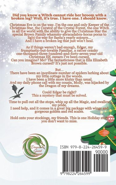 Did you know a Witch cannot ride her broom with a broken leg? Well, it's true. I have one. I should know. Christmas Eve is on the way. I'm the one and only Keeper of the Christmas Star, the Curator of the Crystal Forest, the one Witch in all the world with the ability to give the Christmas Star the special Brown Family whammy-abracadabra-hocus pocus to light the way for Santa's yearly sojourn... And I have a broken leg that just won't heal. As if things weren't bad enough, Edgar, my frumptastic-but-lovable Familiar, a rather cranky one-thousand-three-hundred-and-forty-seven-year-old Christmas Elf, swears I've been cursed. Can you imagine? Me? The fantasticness that is Ella Elizabeth Brown cursed? It's just not possible. But... There have been an inordinate number of spiders lurking about my little cottage in the woods. I have been a little more klutzy than usual. And my daily phone call with my cousin, Molly, was hijacked by the Dragon of my dreams. Could Edgar be right? This a mystery that must be solved. Time to pull out all the stops, whip up all the Magic, and swallow my pride. I need help, and it comes in a great big package with wings and gorgeous golden and red scales. Hold onto your stockings, my friends. This is one Holiday story you don't want to miss.