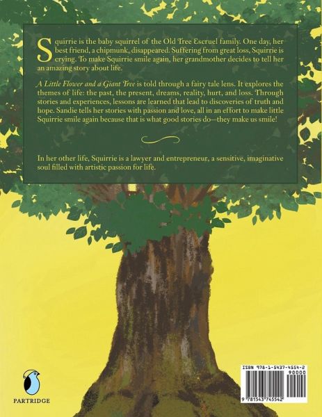 Squirrie is the baby squirrel of the Old Tree Escruel family. One day, her best friend, a chipmunk, disappeared. Suffering from great loss, Squirrie is crying. To make Squirrie smile again, her grandmother decides to tell her an amazing story about life. A Little Flower and a Giant Tree is told through a fairy tale lens. It explores the themes of life: the past, the present, dreams, reality, hurt, and loss. Through stories and experiences, lessons are learned that lead to discoveries of truth and hope. Sandie tells her stories with passion and love, all in an effort to make little Squirrie smile again because that is what good stories do-they make us smile!