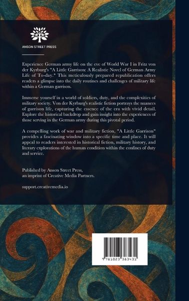 Experience German army life on the eve of World War I in Fritz von der Kyrburg's "A Little Garrison: A Realistic Novel of German Army Life of To-day." This meticulously prepared republication offers readers a glimpse into the daily routines and challenges of military life within a German garrison. Immerse yourself in a world of soldiers, duty, and the complexities of military society. Von der Kyrburg's realistic fiction portrays the nuances of garrison life, capturing the essence of the era with vivid detail. Explore the historical backdrop and gain insight into the experiences of those serving in the German army during this pivotal period. A compelling work of war and military fiction, "A Little Garrison" provides a fascinating window into a specific time and place. It will appeal to readers interested in historical fiction, military history, and literary explorations of the human condition within the confines of duty and service. This work has been selected by scholars as being culturally important, and is part of the knowledge base of civilization as we know it. This work is in the public domain in the United States of America, and possibly other nations. Within the United States, you may freely copy and distribute this work, as no entity (individual or corporate) has a copyright on the body of the work. Scholars believe, and we concur, that this work is important enough to be preserved, reproduced, and made generally available to the public. We appreciate your support of the preservation process, and thank you for being an important part of keeping this knowledge alive and relevant.