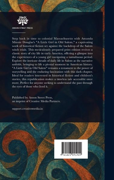 Step back in time to colonial Massachusetts with Amanda Minnie Douglas's "A Little Girl in Old Salem," a captivating work of historical fiction set against the backdrop of the Salem witch trials. This meticulously prepared print edition revives a classic story of city life in early America, offering a glimpse into the experiences of a young girl navigating a tumultuous period. Explore the intricate details of daily life in Salem as the narrative unfolds, bringing to life a pivotal moment in American history. "A Little Girl in Old Salem" remains a testament to the power of storytelling and the enduring fascination with this dark chapter. Ideal for readers interested in historical fiction and children's stories, this republication makes a timeless tale accessible once more. Perfect for anyone seeking to understand the past through the eyes of those who lived it. This work has been selected by scholars as being culturally important, and is part of the knowledge base of civilization as we know it. This work is in the public domain in the United States of America, and possibly other nations. Within the United States, you may freely copy and distribute this work, as no entity (individual or corporate) has a copyright on the body of the work. Scholars believe, and we concur, that this work is important enough to be preserved, reproduced, and made generally available to the public. We appreciate your support of the preservation process, and thank you for being an important part of keeping this knowledge alive and relevant.