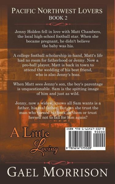 Jenny Holden fell in love with Matt Chambers, the local high-school football star. When she became pregnant, he didn't believe the baby was his. A college football scholarship in-hand, Matt's life had no room for fatherhood or Jenny. Now a pro-ball player, Matt is back in town to attend the wedding of his best friend, who is also Jenny's boss. When Matt sees Jenny's son, the boy's parentage is unquestionable. Sam is the spitting image of him and just as wild. Jenny, now a widow, knows all Sam wants is a father, his real father. But can she trust the man who turned his back on them or trust herself not to fall for him again? REVIEWS: "...so well-drawn, engaging and believable ...a thoroughly satisfying read." ~Kay Gregory, multi-published author PACIFIC NORTHWEST LOVERS, in series order Take Me, I'm Yours A Little Loving OTHER TITLES by Gael Morrison Lovers Never Lie A Woman's Heart Meet Me at Midnight MEET GAEL MORRISON Gael's love of travel and adventure has led her all over the world and provided exciting backdrops for her stories.