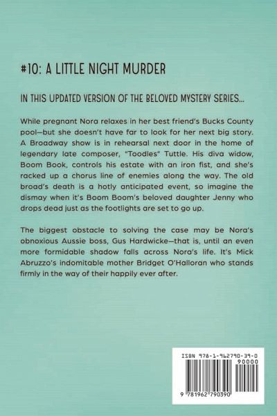 While pregnant Nora relaxes in her best friend's Bucks County pool in this updated version of the Blackbird Sisters' favorite, she doesn't have far to look for her next big story. A Broadway show is in rehearsal next door and the home of legendary late composer, "Toodles" Tuttle. His diva widow, Boom Book, controls his estate with an iron fist, and she's racked up a chorus line of enemies along the way. The old broad's death is a hotly anticipated event, so imagine the dismay when it's Boom Boom's beloved daughter Jenny who drops dead just as the footlights are set to go up. The biggest obstacle to solving the case may be Nora's obnoxious Aussie boss, Gus Hardwicke-that is, until an even more formidable shadow falls across Nora's life. It's Mick Abruzzo's indomitable mother Bridget O'Halloran who stands firmly in the way of their happily ever after.