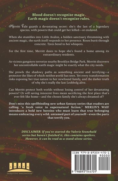 Blood doesn't recognize magic. Earth magic doesn't recognize rules. Merritt Vale guards a devastating secret: she's the last of a legendary species, with powers that could get her killed-or enslaved. When she stumbles into Little Avalon, a hidden sanctuary thrumming with ancient magic, the earth itself responds to her presence. Roses burst through concrete. Trees bend to her whispers. For the first time, Merritt dares to hope she's found a home among its extraordinary residents. As vicious gangsters terrorize nearby Brooklyn Bridge Park, Merritt discovers her uncontrollable earth magic might be exactly what the city needs. She prowls the shadowy paths as something ancient and terrifying-a protector the likes of which neither world has seen. Yet every transformation risks exposing her true nature to her newfound family, and the darker truth of why she's really the last Leshbolg alive. Can Merritt protect both worlds without losing control of her devastating powers? Or will saving innocent lives mean sacrificing the first place that's ever felt like home-and the chosen family she's always dreamed of?