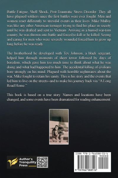 Battle Fatigue, Shell Shock, Post-Traumatic Stress Disorder. They all have plagued soldiers since the first battles were ever fought. Men and women react differently to stressful events in their lives. Mike Malloy was like any other American teenager trying to find his place in society until he was drafted and sent to Vietnam. Arriving in a humid war-torn country, he was thrown into battle and forced to kill or be killed. Seeing and caring for men who were severely wounded forced him to grow up long before he was ready. The brotherhood he developed with Tex Johnson, a black sergeant, helped him through moments of sheer terror followed by days of boredom, which gave him too much time to think about what he was doing and what had happened to him. The accidental killing of civilians bore strongly on his mind. Plagued with horrible nightmares about the war, Mike fought to retain his sanity. This is his story and the events that led him to live on the streets--and to make his journey back via "A Long Road Home." This book is based on a true story. Names and locations have been changed, and some events have been dramatized for reading enhancement.