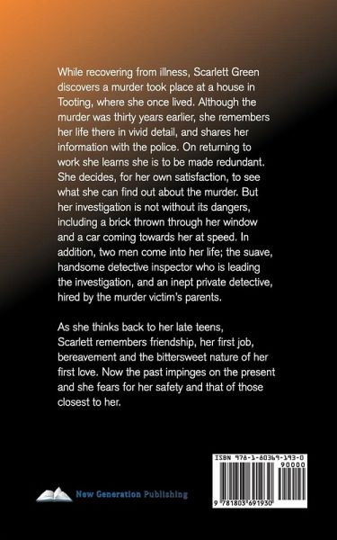 While recovering from illness, Scarlett Green discovers a murder took place at a house in Tooting, where she once lived. Although the murder was thirty years earlier, she remembers her life there in vivid detail, and shares her information with the police. On returning to work she learns she is to be made redundant. She decides, for her own satisfaction, to see what she can find out about the murder. But her investigation is not without its dangers, including a brick thrown through her window and a car coming towards her at speed. In addition, two men come into her life; the suave, handsome detective inspector who is leading the investigation, and an inept private detective, hired by the murder victim's parents.As she thinks back to her late teens, Scarlett remembers friendship, her first job, bereavement and the bittersweet nature of her first love. Now the past impinges on the present and she fears for her safety and that of those closest to her.