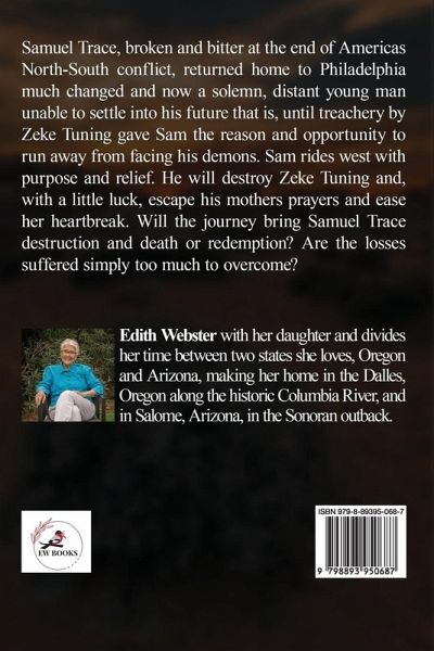 Samuel Trace, broken and bitter at the end of Americas North-South conflict, returned home to Philadelphia much changed and now a solemn, distant young man unable to settle into his future that is, until treachery by Zeke Tuning gave Sam the reason and opportunity to run away from facing his demons. Sam rides west with purpose and relief. He will destroy Zeke Tuning and, with a little luck, escape his mothers prayers and ease her heartbreak. Will the journey bring Samuel Trace destruction and death or redemption? Are the losses suffered simply too much to overcome?