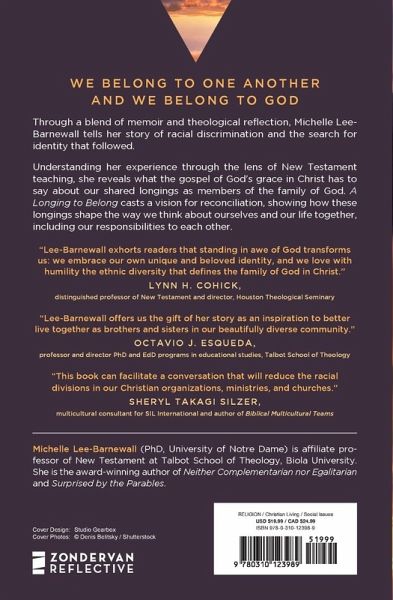 Through Lee-Barnewallâ s insights as both a New Testament scholar and an Asian American who has experienced what it means to be racially marginalized, her memoir, A Longing to Belong spurs readers to consider what it means to live as racially distinctive people in a fallen world that abounds in pain and is in desperate need of the gospel of grace.