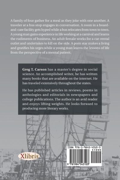 A family of four gather for a meal as they joke with one another. A traveler at a bus stop engages in conversation. A room in a board-and-care facility gets hyped while a bus relocates from town to town. A young man gains experience in life working at a carnival and learns the rudiments of business. An adult female works for a car-rental outlet and undertakes to kill on the side. A porn star makes a living and gratifies his urges while a young man learns the lessons of life from the perspective of a mental patient.