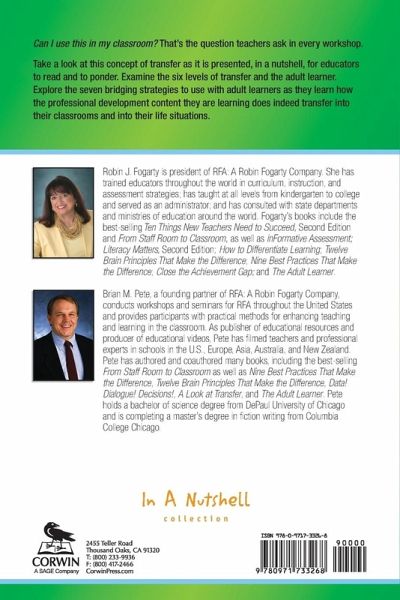 A Look at Transfer examines the six levels of transfer and the adult learner. The book explores the seven bridging strategies to use with adult learners as they learn how the professional development content they are learning does, indeed, transfer into their classrooms and into their life situations.