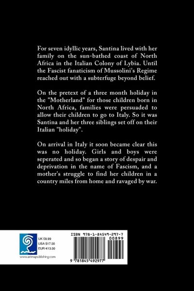 For seven idyllic years, Santina lived with her family on the sun-bathed coast of North Africa in the Italian Colony of Lybia. Until the Fascist fanaticism of Mussolini's Regime reached out with a subterfuge beyond belief. On the pretext of a three month holiday in the "Motherland" for those children born in North Africa, families were persuaded to allow their children to go to Italy. So it was Santina and her three siblings set off on their Italian "holiday". On arrival in Italy it soon became clear this was no holiday. Girls and boys were seperated and so began a story of despair and deprivation in the name of Fascism, and a mother's struggle to find her children in a country miles from home and ravaged by war.