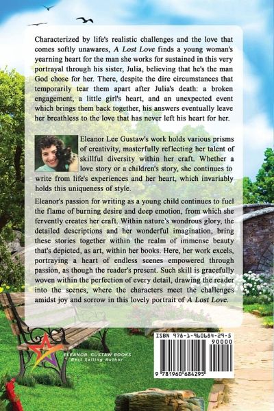 Characterized by life's realistic challenges and the love that comes softly unawares, A Lost Love finds a young woman's yearning heart for the man she works for sustained in this very portrayal through his sister, Julia, believing that he's the man God chose for her. There, despite the dire circumstances that temporarily tears them apart after Julia's death: a broken engagement, a little girl's heart, and an unexpected event which brings them back together, his answers eventually leave her breathless to the love that has never left his heart for her.