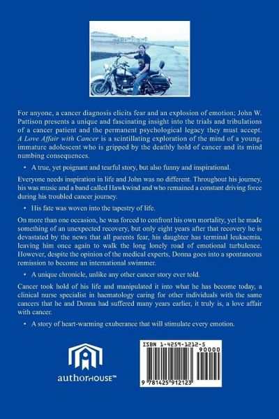For anyone, a cancer diagnosis elicits fear and an explosion of emotion; John W.Pattison presents a unique and fascinating insight into the trials and tribulations of a cancer patient and the permanent psychological legacy they must accept. A love affair with cancer is a scintillating exploration of the mind of a young, immature adolescent who is gripped by the deathly hold of cancer and its mind numbing consequences. . A true, yet poignant and tearful story, but also funny and inspirational. Everyone needs inspiration in life and John was no different. Throughout his journey, his was music and a band called Hawkwind and who remained a constant driving force during his troubled cancer journey. . His fate was woven into the tapestry of life. On more than one occasion, he was forced to confront his own mortality, yet he made something of an unexpected recovery, but only eight years after that recovery he is devastated by the news that all parents fear, his daughter has terminal leukaemia, leaving him once again to walk the long lonely road of emotional turbulence. However, despite the opinion of the medical experts, Donna goes into a spontaneous remission to become an international swimmer. . A unique chronicle, unlike any other cancer story ever told. Cancer took hold of his life and manipulated it into what he has become today, a clinical nurse specialist in haematology caring for other individuals with the same cancers that he and Donna had suffered many years earlier, it truly is, a love affair with cancer. . A story of heart-warming exuberance that will stimulate every emotion.