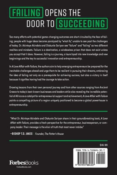 Too many efforts with potential game-changing outcomes are short circuited by the fear of failing. Dr. Akintoye Akindele and Olakunle Soriyan see "failure" and "failing" as two different realities and mindsets. Failure is a destination, a windowless prison that does not exist unless you accept that it does. However, failing is a journey, a launchpad into new knowledge and new beginnings and the key to successful innovation and entrepreneurship.