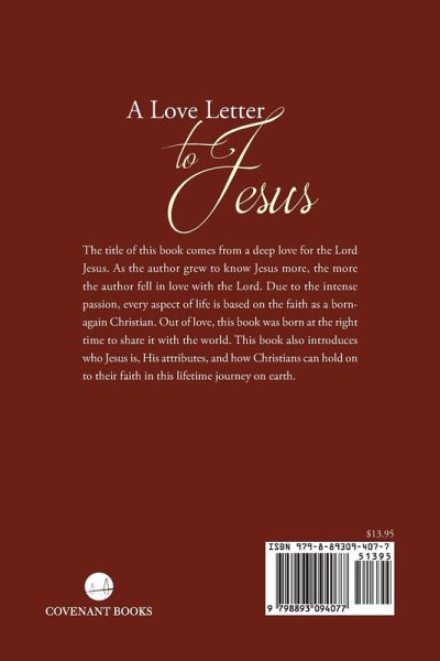 The title of this book comes from a deep love for the Lord Jesus. As the author grew to know Jesus more, the more the author fell in love with the Lord. Due to the intense passion, every aspect of life is based on the faith as a born-again Christian. Out of love, this book was born at the right time to share it with the world. This book also introduces who Jesus is, His attributes, and how Christians can hold on to their faith in this lifetime journey on earth.