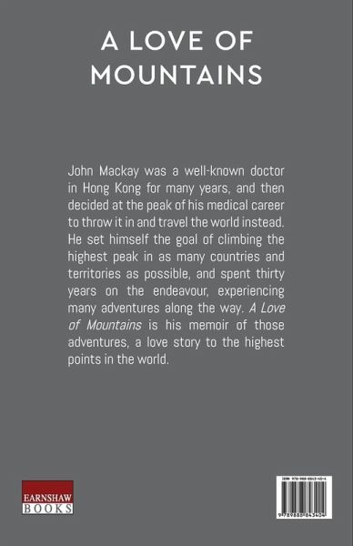 John Mackay was a well-known doctor in Hong Kong for many years, and then decided in the peak of history medical career to throw it in and travel the world instead. He set himself the goal of climbing the highest peak in as many countries and territories as possible, and spent thirty years on the endeavor, experiencing many adventures along the way. A Love of Mountains is his memoir of those adventures, a love story to the highest points in the world.