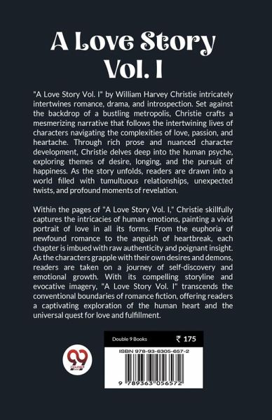 "A Love Story Vol. I" by William Harvey Christie intricately intertwines romance, drama, and introspection. Set against the backdrop of a bustling metropolis, Christie crafts a mesmerizing narrative that follows the intertwining lives of characters navigating the complexities of love, passion, and heartache. Through rich prose and nuanced character development, Christie delves deep into the human psyche, exploring themes of desire, longing, and the pursuit of happiness. As the story unfolds, readers are drawn into a world filled with tumultuous relationships, unexpected twists, and profound…mehr