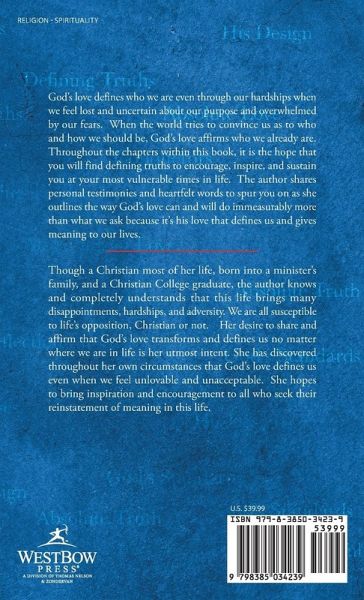 God's love defines who we are even through our hardships when we feel lost and uncertain about our purpose and overwhelmed by our fears. When the world tries to convince us as to who and how we should be, God's love affirms who we already are. Throughout the chapters within this book, it is the hope that you will find defining truths to encourage, inspire, and sustain you at your most vulnerable times in life. The author shares personal testimonies and heartfelt words to spur you on as she outlines the way God's love can and will do immeasurably more than what we ask because it's his love that defines us and gives meaning to our lives.