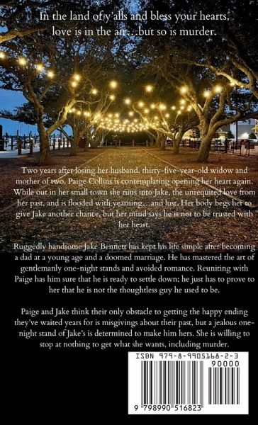 In the land of y'alls and bless your hearts, love is in the air...but so is murder. Two years after losing her husband, thirty-five-year-old widow and mother of two, Paige Collins is contemplating opening her heart again. While out in her small town she runs into Jake, the unrequited love from her past, and is flooded with yearning...and lust. Her body begs her to give Jake another chance, but her mind says he is not to be trusted with her heart. Ruggedly handsome Jake Bennett has kept his life simple after becoming a dad at a young age and a doomed marriage. He has mastered the art of gentlemanly one-night stands and avoided romance. Reuniting with Paige has him sure that he is ready to settle down; he just has to prove to her that he is not the thoughtless guy he used to be. Paige and Jake think their only obstacle to getting the happy ending they've waited years for is misgivings about their past, but a jealous one-night stand of Jake's is determined to make him hers. She is willing to stop at nothing to get what she wants, including murder.