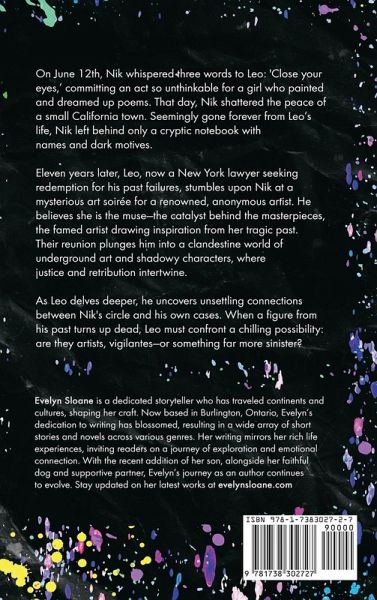 On June 12th, Nik whispered three words to Leo: 'Close your eyes, ' committing an act so unthinkable for a girl who painted and dreamed up poems. That day, Nik shattered the peace of a small California town. Seemingly gone forever from Leo's life, Nik left behind only a cryptic notebook with names and dark motives. Eleven years later, Leo, now a New York lawyer seeking redemption for his past failures, stumbles upon Nik at a mysterious art soirée for a renowned, anonymous artist. He believes she is the muse-the catalyst behind the masterpieces, the famed artist drawing inspiration from her tragic past. Their reunion plunges him into a clandestine world of underground art and shadowy characters, where justice and retribution intertwine. As Leo delves deeper, he uncovers unsettling connections between Nik's circle and his own cases. When a figure from his past turns up dead, Leo must confront a chilling possibility: are they artists, vigilantes-or something far more sinister? Content Advisory: This book contains themes that some readers may find sensitive or triggering, including discussions of sexual assault (no explicit scenes), thoughts of suicide, domestic violence (no explicit scenes), murder, and some spice. Please be aware of these elements as you consider reading this story.