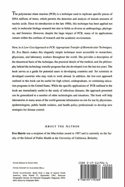 The polymerase chain reaction (PCR) is a technique used to replicate specific pieces of DNA millions of times, which permits the detection and analysis of minute amounts of nucleic acids. Since its introduction in the late 1980s, this technique has been applied not only in molecular biology research but also in fields as diverse as anthropology, phylogeny, and forensics. However, despite the large impact of PCR, many of its applications remain within the confines of research and the academic environment. Now, in A Low-Cost Approach to PCR: Appropriate Transfer of Biomolecular Techniques, Dr. Eva Harris makes this elegantly simple technique more accessible to researchers, physicians, and laboratory workers throughout the world. She provides a description of the theoretical basis of the technique, the practical details of the method, and the philosophy behind the technology transfer program that she developed over the last ten years. The book serves as a guide for potential users in developing countries and for scientists in developed countries who may wish to work abroad. In addition, the low-cost approach outlined in this book can be useful for high school, undergraduate, or continuing education programs in the United States. While the specific applications of PCR outlined in the book are immediately useful to the study of infectious diseases, the approach presented can be generalized to a number of other technologies and situations. The book will help laboratories in many areas of the world generate information on site for use by physicians, epidemiologists, public health workers, and health policy professionals to develop new strategies for disease control.