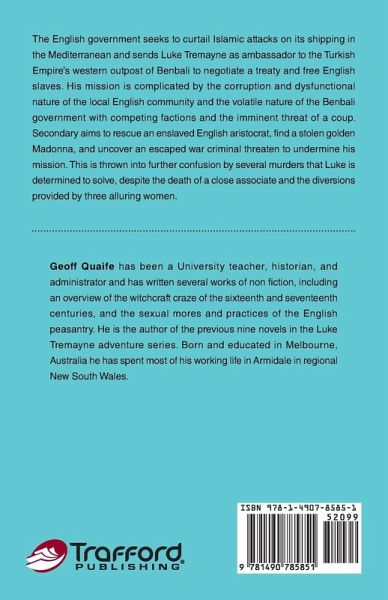 The English government seeks to curtail Islamic attacks on its shipping in the Mediterranean and sends Luke Tremayne as ambassador to the Turkish Empire's western outpost of Benbali to negotiate a treaty and free English slaves. His mission is complicated by the corruption and dysfunctional nature of the local English community and the volatile nature of the Benbali government with competing factions and the imminent threat of a coup. Secondary aims to rescue an enslaved English aristocrat, find a stolen golden Madonna, and uncover an escaped war criminal threaten to undermine his mission. This is thrown into further confusion by several murders that Luke is determined to solve despite the death of a close associate and the diversions provided by three alluring women.