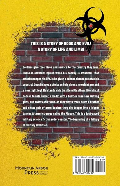 This is a story of Good and Evil! A story of Life and Limb! Soldiers give their lives and service to the country they love. Chase is severely injured while his convoy is attacked. That attack changes his life. Is he given a second chance to serve his country? Does he have a choice as he is given a new right arm and a new right leg? He stands side by side with others like him. A badass female sniper, a medic with a built-in bone saw, Gatling guns, and twists and turns. As they try to track down a brother and sister pair of arms dealers they dig deeper into a bigger danger. A terrorist group called The Plague. This is a fast-paced military science fiction roller coaster. The beginning of a trilogy of military evolution.