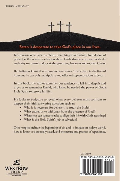Satan is desperate to take God's place in our lives. Isaiah wrote of Satan's manifesto, describing it as having a foundation of pride. Lucifer wanted exaltation above God's throne, entrusted with the authority to control and speak the governing law to us and to Jesus Christ. But believers know that Satan can never take Christ's place in the lives of humans; he can only manipulate and offer misrepresentations of Jesus. In this book, the author examines our tendency to fall into despair and urges us to remember David, who knew he needed the power of God's Holy Spirit to restore his life. He looks to Scripture to reveal what every believer must confront to deepen their faith, answering questions such as: ¿ Why is it necessary for believers to study the Bible? ¿ What causes us to withdraw from the presence of God? ¿ What steps can someone take to align their life with God's teachings? ¿ What is the Holy Spirit's job in salvation? Other topics include the beginning of sin and its impact on today's world, how to know you are really saved, and the nature and process of repentance.