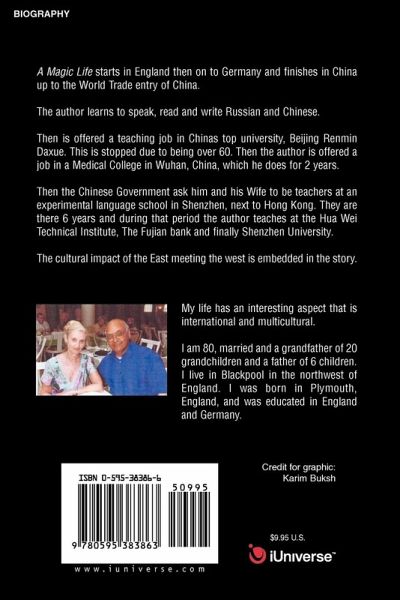 A Magic Life starts in England then on to Germany and finishes in China up to the World Trade entry of China. The author learns to speak, read and write Russian and Chinese. Then is offered a teaching job in Chinas top university, Beijing Remnin Daxue. This is stopped due to being over 60. Then the author is offered a job in a Medical College in Wuhan, China, which he does for 2 years. Then the Chinese Government ask him and his Wife to be teachers at an experimental language school in Shenzhen, next to Hong Kong. They are there 6 years and during that period the author teaches at the Hua Wei Technical Institute, The Fujian bank and finally Shenzhen University. The cultural impact of the East meeting the west is embedded in the story.