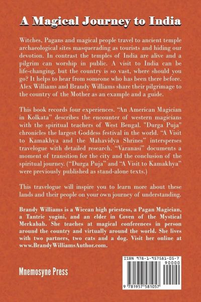 Witches, Pagans and magicians visit India as pilgrims. There are many resources for tourists to plan their adventures but few guides for the magical traveler. This book offers an example of a sacred itinerary. Following in the footsteps of Annie Besant, Aleister Crowley and Sister Nivedita, Brandy Williams visited temples, participated in a Goddess festival, and experienced one of the oldest spiritual cities in the world. In Kolkata she found one of the roots of magick, at Kamakhya she found ancient cave shrines of the Goddess, in Varanasi she encountered India in miniature. This indispensable guide combines travelogue with magical history, information about specific places and advice on how to plan your own journey.