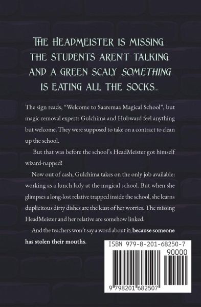 The HeadMeister is missing, the students aren't talking, and a green scaly something is eating all the socks . . . The sign reads, "Welcome to Saaremaa Magical School", but magic removal experts Gulchima and Hubward feel anything but welcome. They were supposed to take on a contract to clean up the school. But that was before the school's HeadMeister got himself wizard-napped! Now they're stranded outside the school's gates; out of work and dangerously low on butter. Gulchima soon talks her way into the only job available, an entry level position as a lunch lady at the school. She's not much of a cook, so Gulchima is assigned the kitchen's most dangerous duties: Removing the critters that even magic couldn't tame. Slapkins, and Soccodiles, and inter-dimensional kitties . . . oh-my! But when Gulchima glimpses a long-lost relative trapped inside the school, she learns duplicitous dirty dishes are the least of her worries. The missing HeadMeister and her relative are somehow linked. And the teachers won't say a word about it; because someone has stolen their mouths. ------------------------------------------------ Puffed-up prophecies, side-splitting spells, and some seriously inventive world-building. If you need a trope-twisting laugh, buy A Magical School for Magical Fools today! Dear Reader: Like Discworld, these books can be read in any order.