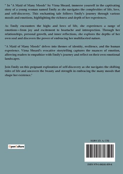 " In "A Maid of Many Moods" by Virna Sheard, immerse yourself in the captivating story of a young woman named Emily as she navigates the complexities of life, love, and self-discovery. This enchanting tale follows Emily's journey through various moods and emotions, highlighting the richness and depth of her experiences. As Emily encounters the highs and lows of life, she experiences a range of emotions¿from joy and excitement to heartache and introspection. Through her relationships, personal growth, and inner reflections, she explores the depths of her own soul and discovers the power of embracing her multifaceted nature. "A Maid of Many Moods" delves into themes of identity, resilience, and the human experience. Virna Sheard's evocative storytelling captures the nuances of emotion, allowing readers to empathize with Emily's journey and reflect on their own emotional landscapes. Join Emily on this poignant exploration of self-discovery as she navigates the shifting tides of life and uncovers the beauty and strength in embracing the many moods that shape her existence."