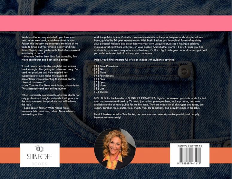 "Mish has the techniques to help you look your best. In her new book, A Makeup Artist in your Pocket, this industry expert reveals the tricks of the trade to bring out your unique beauty and hide flaws. Step-by-step guides with illustrations make it easy to try at home." -Miranda Devine, New York Post journalist, Fox News contributor and best-selling author "I can't recommend Mish's insightful and unique book enough after getting an advanced copy. I've used her products and have applied her suggestions to even make this mug look presentable while presenting to millions on Fox News. A must-read!" -Joe Concha, Fox News contributor, columnist for The Messenger and best-selling author "Mish is uniquely positioned to offer her clients not only professional insights as to what will give you the look you need but products that will achieve the look." -Sean Spicer, former White House Press Secretary, television host, retired Navy veteran, best-selling author A Makeup Artist in Your Pocket is a course in celebrity makeup techniques made simple, all in a book, guided by 30-year industry expert Mish Bush. It takes you through all facets of applying your personal makeup and color theory to your own unique features as if having a celebrity makeup artist right there with you-in your pocket! And whether you're 16 or 76, once you find and identify your own unique face and features, it's like a light bulb goes on, and never again will you suffer a drawer full of makeup you cannot use. Inside, you'll find chapters full of color images with guidance covering: [ 1 ] Basic Procedure [ 2 ] Skin [ 3 ] Flaws [ 4 ] Foundations [ 5 ] Face [ 6 ] Eyes [ 7 ] Nose [ 8 ] Lips [ 9 ] Brushes MISH BUSH is the founder of SHINEOFF COSMETICS, highly concentrated products made for both men and women and used by TV hosts, journalists, photographers, makeup artists, and now available to the general public for the first time. They are made for all skin types and tones, are vegan, paraben-free, gluten-free, cruelty-free, EU compliant, and proudly made in the USA. Read A Makeup Artist in Your Pocket, become your own celebrity makeup artist, and happily become camera-ready!
