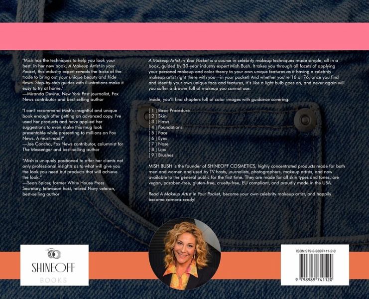 "Mish has the techniques to help you look your best. In her new book, A Makeup Artist in your Pocket, this industry expert reveals the tricks of the trade to bring out your unique beauty and hide flaws. Step-by-step guides with illustrations make it easy to try at home." -Miranda Devine, New York Post journalist, Fox News contributor and best-selling author "I can't recommend Mish's insightful and unique book enough after getting an advanced copy. I've used her products and have applied her suggestions to even make this mug look presentable while presenting to millions on Fox News. A must-read!" -Joe Concha, Fox News contributor, columnist for The Messenger and best-selling author "Mish is uniquely positioned to offer her clients not only professional insights as to what will give you the look you need but products that will achieve the look." -Sean Spicer, former White House Press Secretary, television host, retired Navy veteran, best-selling author A Makeup Artist in Your Pocket is a course in celebrity makeup techniques made simple, all in a book, guided by 30-year industry expert Mish Bush. It takes you through all facets of applying your personal makeup and color theory to your own unique features as if having a celebrity makeup artist right there with you-in your pocket! And whether you're 16 or 76, once you find and identify your own unique face and features, it's like a light bulb goes on, and never again will you suffer a drawer full of makeup you cannot use. Inside, you'll find chapters full of color images with guidance covering: [ 1 ] Basic Procedure [ 2 ] Skin [ 3 ] Flaws [ 4 ] Foundations [ 5 ] Face [ 6 ] Eyes [ 7 ] Nose [ 8 ] Lips [ 9 ] Brushes MISH BUSH is the founder of SHINEOFF COSMETICS, highly concentrated products made for both men and women and used by TV hosts, journalists, photographers, makeup artists, and now available to the general public for the first time. They are made for all skin types and tones, are vegan, paraben-free, gluten-free, cruelty-free, EU compliant, and proudly made in the USA. Read A Makeup Artist in Your Pocket, become your own celebrity makeup artist, and happily become camera-ready!