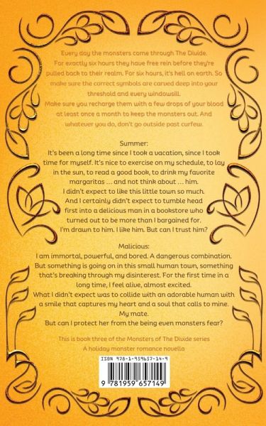 Summer: It's been a long time since I took a vacation, since I took time for myself. It's nice to exercise on my schedule, to lay in the sun, to read a good book, to drink my favorite margaritas ... and not think about ... him. I didn't expect to like this little town so much. And I certainly didn't expect to tumble head first into a delicious man in a bookstore who turned out to be more than I bargained for. I'm drawn to him. I like him. But can I trust him? Malicious: I am immortal, powerful, and bored. A dangerous combination. But something is going on in this small human town, something that's breaking through my disinterest. For the first time in a long time, I feel alive, almost excited. What I didn't expect was to collide with an adorable human with a smile that captures my heart and a soul that calls to mine. My mate. But can I protect her from the being even monsters fear?