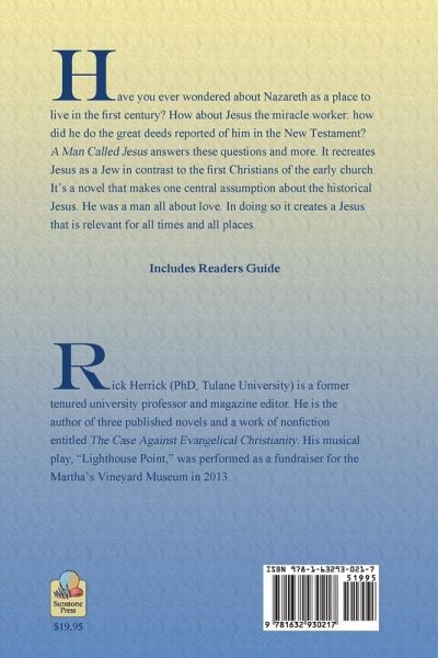 Have you ever wondered about Nazareth as a place to live in the first century? How about Jesus the miracle worker: how did he do the great deeds reported of him in the New Testament? "A Man Called Jesus" answers these questions and more. It recreates Jesus as a Jew in contrast to the first Christian of the early church. It's a novel that makes one central assumption about the historical Jesus. He was a man all about love. In doing so it creates a Jesus that is relevant for all times and all places. Rick Herrick (PhD, Tulane University) is a former tenured university professor and magazine editor. He is the author of three published novels and a work of nonfiction entitled "The Case Against Evangelical Christianity." His musical play, "Lighthouse Point," was performed as a fundraiser for the Martha's Vineyard Museum in 2013.