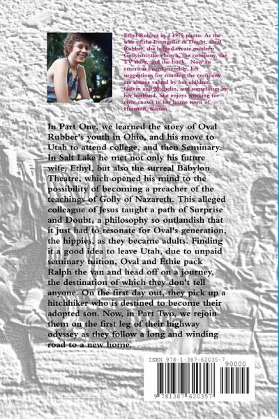 The second part of a new, three volume, edition of the notorious book that tells the truth about the legendary preacher and his legendary church. It continues the story of the legendary road trip in which the legend began to form, with the coming together of several of the people who would help create and sustain the legendary Golly Group, the first media company to develop both a new religion, and the legendary TV show that brought it to the world. Ethyl Rubber tells the story as if she was there--and she was! Welcome to 1976, a couple of VW buses, and the loosely-knit family of hippies who are shuffling towards their roles in creating the newest example of homegrown American religion: The Church Of Golly.