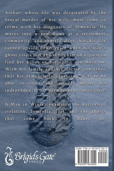 Arthur, whose life was devastated by the brutal murder of his wife, must come to terms with his diagnosis of dementia. He moves into a new home at a retirement community, and shortly after, has his life turned upside down again when his wife's ghost visits him and sends him on a quest to find her killer so her spirit can move on. With his family and his doctor concerned that his dementia is advancing, will he be able to solve the murder before his independence is permanently restricted? A Man in Winter examines the horrors of isolation, dementia, loss, and the ghosts that come back to haunt us.