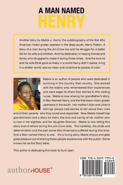 Another story by Mable J. Harris, the autobiography of the first Afro American motor grader operator in the deep south, Henry Patton. A story of a man during the Jim Crow era and his struggle for a better life for his wife and children. And his dedication in helping friends and family who struggled to make it during those times. And the love he and his wife Ethel gave so freely in a world Henry didn't realize, living in a shelter world, was so mean and vindictive to people of color.