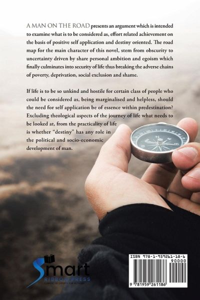 This is an illustrative account of the inner struggle of man from birth to death, in retrospect of desire to achieve the optimum goal of life; which could either be beautiful, ugly, hard, soft, compromising and unpredictable within the whims of time. If destiny is to determine failures and successes in our human endeavour then, what part does personal efforts and determinism be considered as our human deliberation. 'A MAN ON THE ROAD', presents an argument which is intended to examine what is to be considered as, effort related achievement on the basis of positive self application and destiny oriented. The road map for the main character of this novel, stem from obscurity to uncertainty driven by share personal ambition and egoism which finally culminates into security of life thus breaking the adverse chains of poverty, deprivation, social exclusion and shame. If life is to be so unkind and hostile for certain class of people who could be considered as, being marginalised and helpless, should the need for self application be of essence within predestination? Excluding theological aspects of the journey of life what needs to be looked at, from the practicality of life is whether 'destiny' has any role in the political and socio-economic development of man.