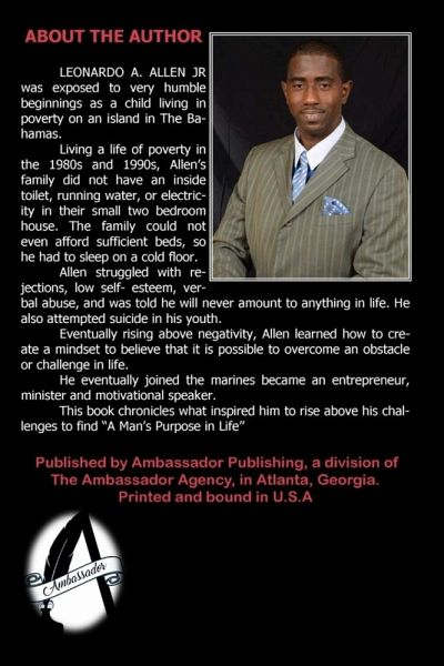 From his humble beginnings as a child living in The Bahamas without electricity or indoor plumbing, to suffering low-self esteem and battling drug, alcohol and sex addictions, author Leonardo A. Allen, Jr. gives a raw look at what could have been compared to where he is now. In his debut book, he shares how he became a marine, entrepreneur, minister and motivational speaker and why he was led to launch a program to keep young men from making the same mistakes he did in his youth.