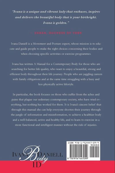Ivana Daniell is a movement and posture expert, whose mission is to educate and guide people to make the right choices concerning their bodies or when choosing specific activities or exercise programme. Ivana has written A Manuel For A Contemporary Body for those who are searching for a better quality of life who want to enjoy a beautiful, strong and efficient body throughout their life journey. People who are juggling careers with family obligations and at the same time are struggling with a busy and less physically active lifestyle. In particular, those book focuses on those who suffer from aches and pains that plague our sedentary contemporary society who have tried everything but nothing has worked for them. It is Ivana's sincere belief that through this manual she can help everyone shorten their journey through the jungle of information and misinformation, to achieve a healthier body and a well-balanced, active and healthy lifestyle and to learn exercise is a more functional and intelligent manner without the risk of injuries.