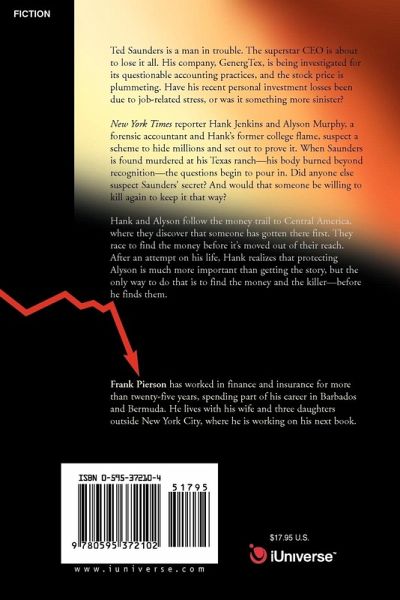 Ted Saunders is a man in trouble. The superstar CEO is about to lose it all. His company, GenergTex, is being investigated for its questionable accounting practices, and the stock price is plummeting. Have his recent personal investment losses been due to job-related stress, or was it something more sinister? New York Times reporter Hank Jenkins and Alyson Murphy, a forensic accountant and Hank's former college flame, suspect a scheme to hide millions and set out to prove it. When Saunders is found murdered at his Texas ranch-his body burned beyond recognition-the questions begin to pour in. Did anyone else suspect Saunders' secret? And would that someone be willing to kill again to keep it that way? Hank and Alyson follow the money trail to Central America, where they discover that someone has gotten there first. They race to find the money before it's moved out of their reach. After an attempt on his life, Hank realizes that protecting Alyson is much more important than getting the story, but the only way to do that is to find the money and the killer-before he finds them.