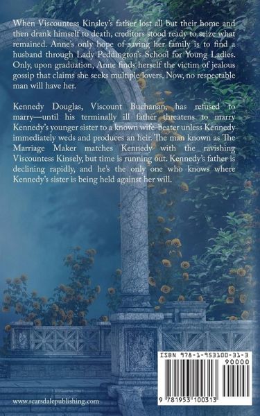 He offered one night. She needs a lifetime... When Viscountess Kinsley's father lost all but their home and then drank himself to death, creditors stood ready to seize what remained. Anne's only hope of saving her family is to find a husband through Lady Peddington's School for Young Ladies. Only, upon graduation, Anne finds herself the victim of jealous gossip that claims she seeks multiple lovers. Now, no respectable man will have her. Kennedy Douglas, Viscount Buchanan, has refused to marry-until his terminally ill father threatens to marry Kennedy's younger sister to a known wife-beater unless Kennedy immediately weds and produces an heir. The man known as The Marriage Maker matches Kennedy with the ravishing Viscountess Kinsely, but time is running out. Kennedy's father is declining rapidly, and he's the only one who knows where Kennedy's sister is being held against her will.