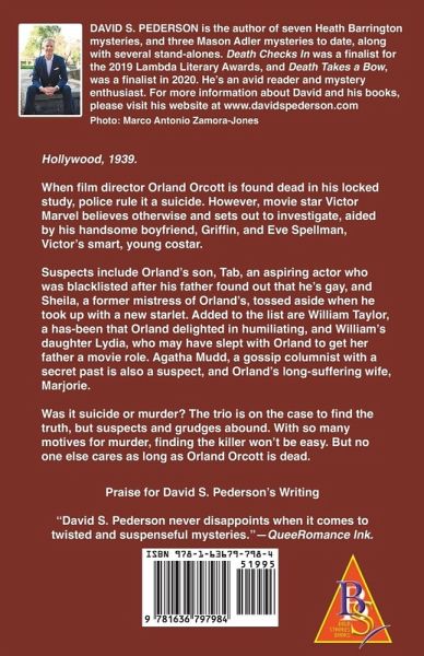 Hollywood, 1939. When film director Orland Orcott is found dead in his locked study, police rule it a suicide. However, movie star Victor Marvel believes otherwise and sets out to investigate, aided by his handsome boyfriend, Griffin, and Eve Spellman, Victor's smart, young costar. Suspects include Orland's son, Tab, an aspiring actor who was blacklisted after his father found out that he's gay, and Sheila, a former mistress of Orland's, tossed aside when he took up with a new starlet. Added to the list are William Taylor, a has-been that Orland delighted in humiliating, William's daughter Lydia, who may have slept with Orland to get her father a movie role, Agatha Mudd, a gossip columnist with a secret past is also a suspect, and Orland's long-suffering wife, Marjorie. Was it suicide or murder? The trio is on the case to find the truth, but suspects and grudges abound. With so many motives for murder, finding the killer won't be easy. But no one else cares as long as Orland Orcott is dead.