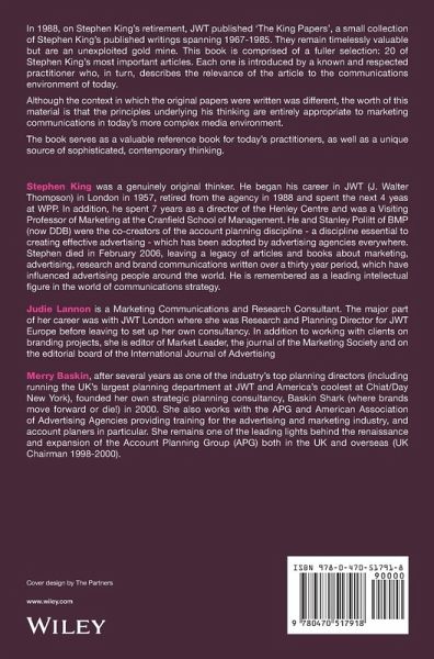 King writes of our industry, at its best, representing "Creative imagination subjected to critical control." He could have been describing his own mind and approach, which have inspired generations of brand managers and planners and remain deeply relevant today. This book should be required reading for everyone entering the business, and serve as a reminder to the rest of us that however high we think we have set our standards, they are probably not high enough.