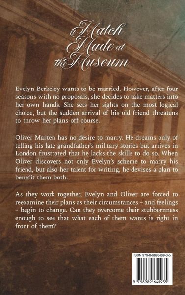 Evelyn Berkeley wants to be married. However, after four seasons with no proposals, she decides to take matters into her own hands. She sets her sights on the most logical choice, but the sudden arrival of his old friend threatens to throw her plans off course. Oliver Marten has no desire to marry. He dreams only of telling his late grandfather's military stories but arrives in London frustrated that he lacks the skills to do so. When Oliver discovers not only Evelyn's scheme to marry his friend, but also her talent for writing, he devises a plan to benefit them both. As they work together, Evelyn and Oliver are forced to reexamine their plans as their circumstances - and feelings - begin to change. Can they overcome their stubbornness enough to see that what each of them wants is right in front of them?