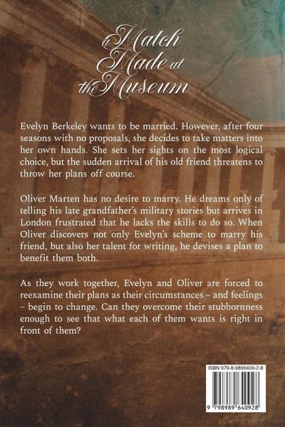 Evelyn Berkeley wants to be married. However, after four seasons with no proposals, she decides to take matters into her own hands. She sets her sights on the most logical choice, but the sudden arrival of his old friend threatens to throw her plans off course. Oliver Marten has no desire to marry. He dreams only of telling his late grandfather's military stories but arrives in London frustrated that he lacks the skills to do so. When Oliver discovers not only Evelyn's scheme to marry his friend, but also her talent for writing, he devises a plan to benefit them both. As they work together, Evelyn and Oliver are forced to reexamine their plans as their circumstances - and feelings - begin to change. Can they overcome their stubbornness enough to see that what each of them wants is right in front of them?
