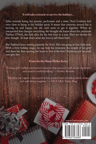 It will take a miracle to survive the holidays... After recently losing her parents, packmates and a sister, Noel Cordona isn't even close to being in the holiday spirit. It seems that everyone around her is moving on and happy, but she can't seem to get it together. When an unexpected kiss changes everything she thought she knew about her packmate Nathan O'Neill, she feels alive for the first time in a year. She's too broken for him though. At least that's what she tries to tell them both. But Nathan's been waiting patiently for Noel. He's not going to lose faith now. With a little holiday magic, he can help her overcome the weight of her grief and show her that opening her heart to him is the best Christmas gift he could ever give her. Author note: A Mate for Christmas is not meant to be read as a stand-alone. Set in the Moon Shifter world, this novella features all your favorite characters in a final wrap-up of the Moon Shifter series.