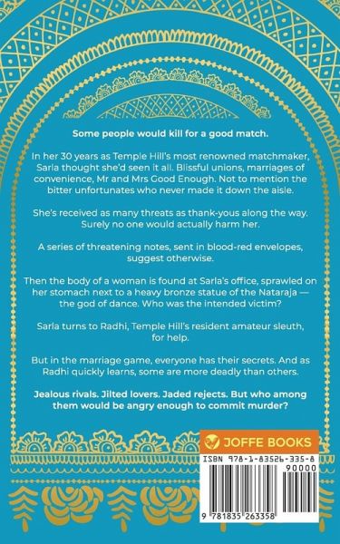 Some people would kill for a good match. In her 30 years as Temple Hill's most renowned matchmaker, Sarla thought she'd seen it all. Blissful unions, marriages of convenience, Mr and Mrs Good Enough. Not to mention the bitter unfortunates who never made it down the aisle. She's received as many threats as thank-yous along the way. Surely no one would actually harm her. A series of threatening notes, sent in blood-red envelopes, suggest otherwise. Then the body of a woman is found at Sarla's office, sprawled on her stomach next to a heavy bronze statue of the Nataraja - the god of dance. Who was the intended victim? Sarla turns to Radhi, Temple Hill's resident amateur sleuth, for help. But in the marriage game, everyone has their secrets. And as Radhi quickly learns, some are more deadly than others. Jealous rivals. Jilted lovers. Jaded rejects. But who among them would be angry enough to commit murder?