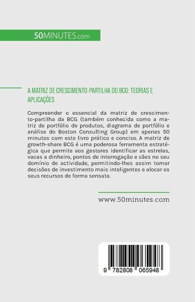 Compreender o essencial da matriz de crescimento-partilha da BCG (também conhecida como a matriz de portfólio de produtos, diagrama de portfólio e análise do Boston Consulting Group) em apenas 50 minutos com este livro prático e conciso. A matriz de growth-share BCG é uma poderosa ferramenta estratégica que permite aos gestores identificar as estrelas, vacas a dinheiro, pontos de interrogação e cães no seu domínio de actividade, permitindo-lhes assim tomar decisões de investimento mais inteligentes e alocar os seus recursos de forma sensata. Este livro irá fornecer-lhe uma introdução útil às aplicações da matriz de growth-share do BCG na análise de carteiras, processos de tomada de decisão e alocação de recursos. Também apresenta uma exploração de um estudo de caso prático, uma discussão das deficiências da ferramenta, incluindo a sua alegada imprecisão e simplificação excessiva, e uma introdução a modelos relacionados, tais como a Matriz GE da McKinsey e a Matriz do Portfólio de Ashridge. Sobre a Matriz BCG de Partilha de Crescimento : A matriz de growth-share BCG foi desenvolvida pelo Boston Consulting Group nos anos 60 para determinar a quota de mercado relativa de uma actividade e avaliar o crescimento do mercado a ela ligado. Isto permite aos gestores identificar actividades geradoras de lucros ou de elevado potencial, bem como actividades em declínio e actividades que são susceptíveis de entrar em colapso. Isto tem consequências importantes quando se trata de decidir em que sectores se deve concentrar e onde atribuir recursos escassos. Neste livro, descobrirá como a matriz de crescimento-partilha do BCG o pode ajudar, aprenderá a classificar as suas unidades de negócio estratégicas nas quatro categorias, e utilizará as suas descobertas para tomar melhores decisões empresariais. Uma explicação clara dos benefícios e potenciais inconvenientes do método, uma discussão de um estudo de caso prático, e uma introdução a modelos relacionados dar-lhe-ão as ferramentas de que necessita para adaptar a sua abordagem à sua situação.